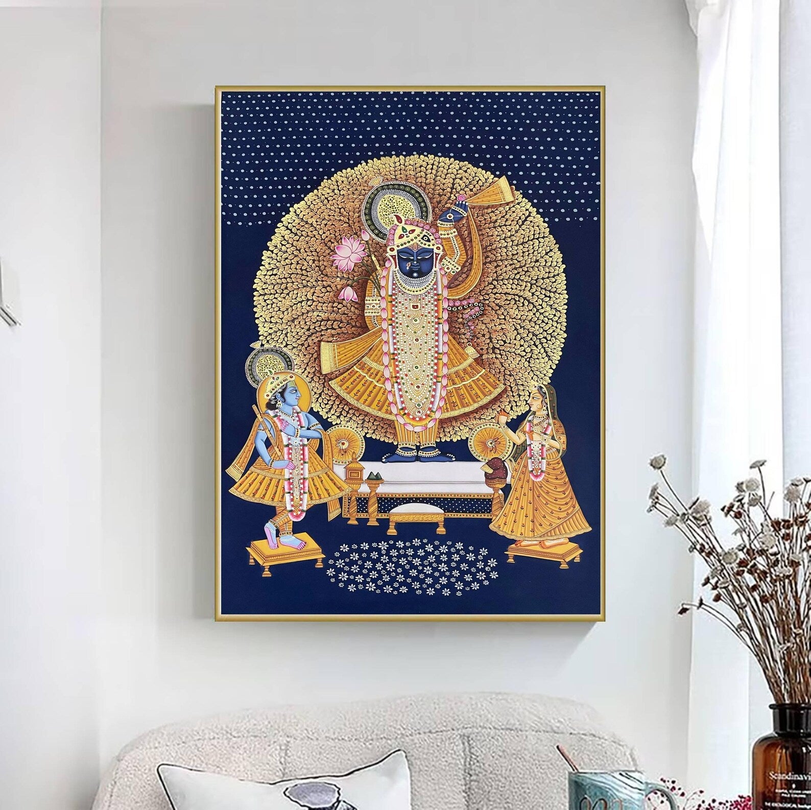 Shrinath ji Pichwai Painting On Cloth, Indian Pichwai Painting, Wall Hanging ,Home decor ,Art ,Handmade Painting, Indian Art